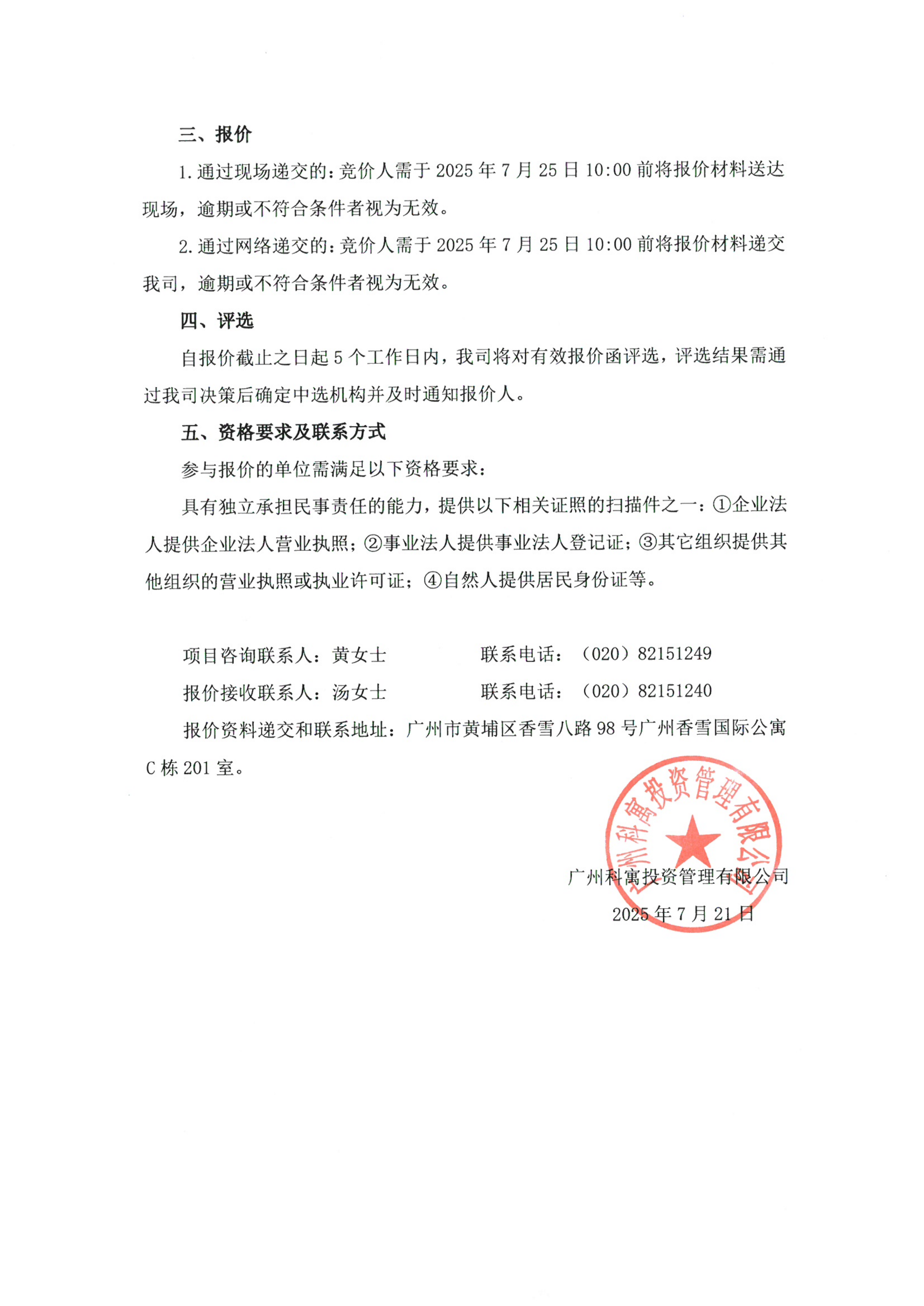 关于香雪国际公寓2025年度灭鼠杀虫服务的询价函