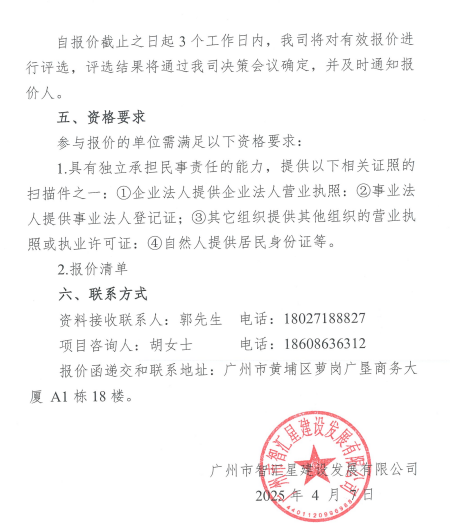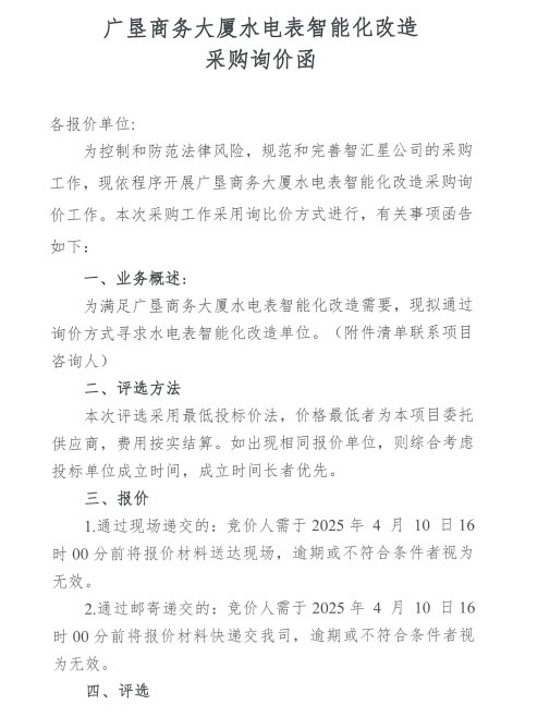 关于广垦商务大厦A2栋墙面刷漆的询价函